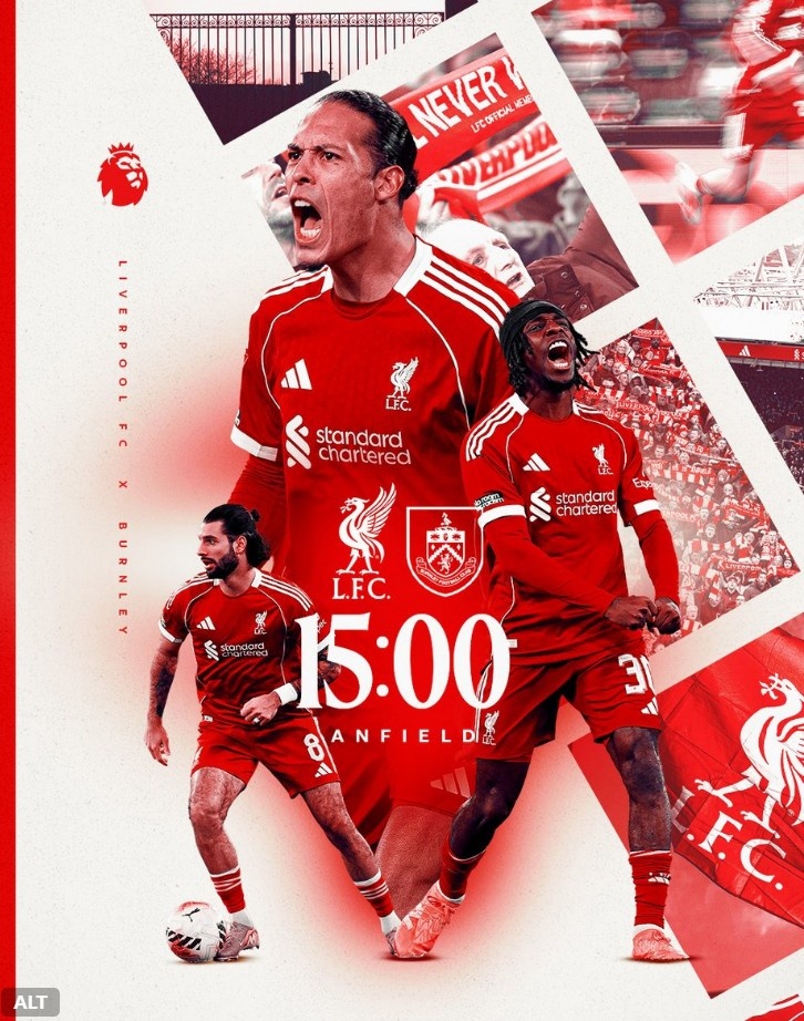 海报中范戴克、弗林蓬以及索博斯洛伊出镜,球队此前对阵伯恩利已经取得6连胜。