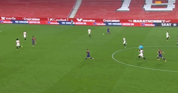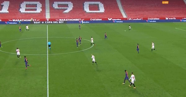 25'孔德从后场开始带球,在与队友撞墙后连过数人,禁区内冷静施射破门,塞维利亚1-0领先巴萨!
